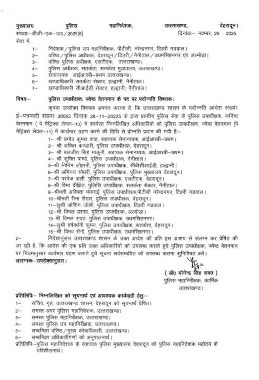 उत्तराखंड पुलिस विभाग से बड़ी खबर , कई CO को मिली नई जिम्मेदारी