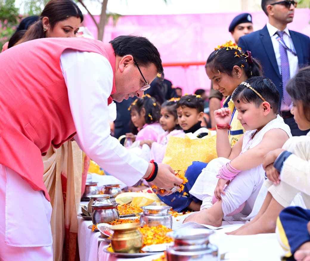 कार्यक्रम में मुख्यमंत्री ने 11 कन्याओं का पूजन किया तथा उन्हें उपहार एवं दक्षिणा भेंट की तथा मुख्यमंत्री ने 06 कन्याओं के सामूहिक विवाह पर उनको शुभकामनाएं एवं आशीर्वाद दिया तथा उनके सुखद जीवन को कमाना की।