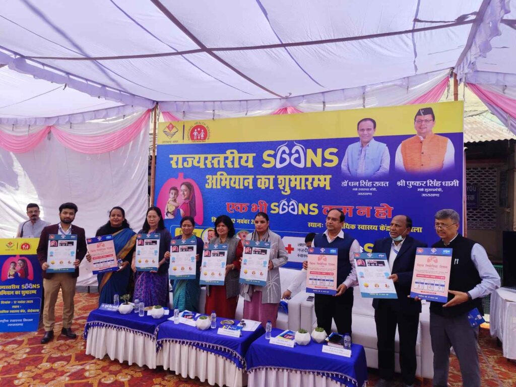 मुख्यमंत्री पुष्कर सिंह धामी के दिशा-निर्देशों में राष्ट्रीय स्वास्थ्य मिशन, उत्तराखंड के अंतर्गत संचालित ‘सांस अभियान (Social Awareness and Action to Neutralize Pneumonia Successfully) 2025–26’ का राज्य स्तरीय शुभारंभ विश्व निमोनिया दिवस के अवसर पर सामुदायिक स्वास्थ्य केन्द्र (सीएचसी) डोईवाला, देहरादून में किया गया। यह कार्यक्रम बाल स्वास्थ्य के प्रति जन-जागरूकता बढ़ाने और पाँच वर्ष से कम आयु के बच्चों को निमोनिया से बचाने के उद्देश्य से आयोजित किया गया। कार्यक्रम की मुख्य अतिथि श्रीमती अनुराधा पाल (आईएएस), कार्यवाहक मिशन निदेशक, राष्ट्रीय स्वास्थ्य मिशन रहीं। उनके साथ मंच पर डॉ. आर. सी. पंत (निदेशक, डीजी हेल्थ सर्विसेज), डॉ. रश्मि पंत (निदेशक, एनएचएम), डॉ. मनोज शर्मा (मुख्य चिकित्साधिकारी, देहरादून) और डॉ. के. एस. भंडारी (सीएमएस, सीएचसी डोईवाला) उपस्थित रहे।