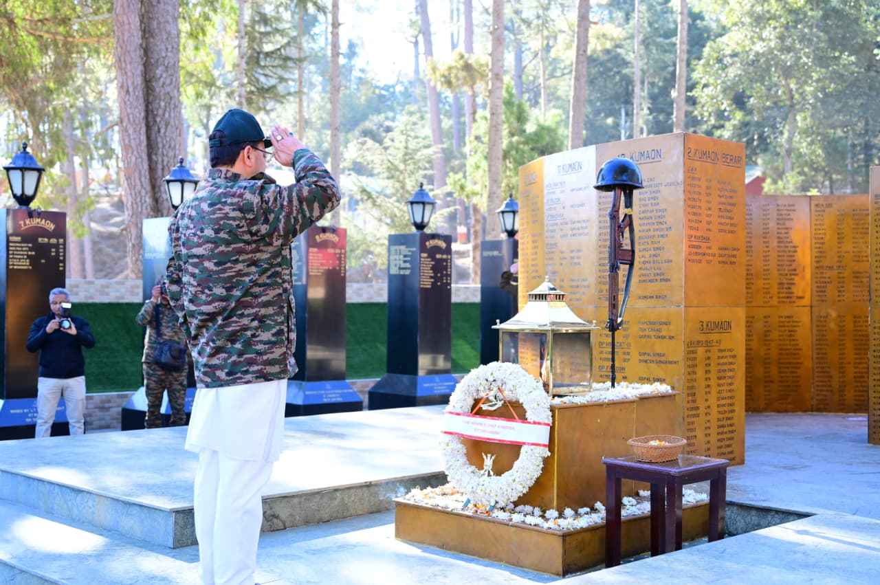 • मुख्यमंत्री ने कुमाऊं रेजीमेंट केंद्र रानीखेत पहुंचकर अमर बलिदानियों को अर्पित की श्रद्धांजलि