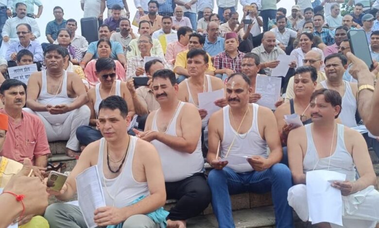 शिक्षक संघ का अनोखा विरोध, गंगा तट पर किया सीधी भर्ती नियमावली का तर्पण